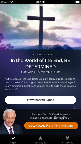 TurningPoint är en gratis streamingplattform som erbjuder ett brett utbud av andliga och livsstilsinriktade program från Turning Point Ministries, grundat av Dr. David Jeremiah. Användare kan få tillgång till en mängd olika predikningar, samtal och undervisningar som syftar till att inspirera och vägleda i det dagliga livet. Plattformen är tillgänglig för iPhone-användare och ger möjlighet att streama innehåll när som helst och var som helst.